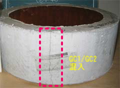 「GC2」は比較的細径で、「GC1」と同一質量で表面積が大きいことによりひび割れ分散性を期待するもので、混合することにより「GC1」単独よりも高いひび割れ幅拡大の抑制効果が期待できます。